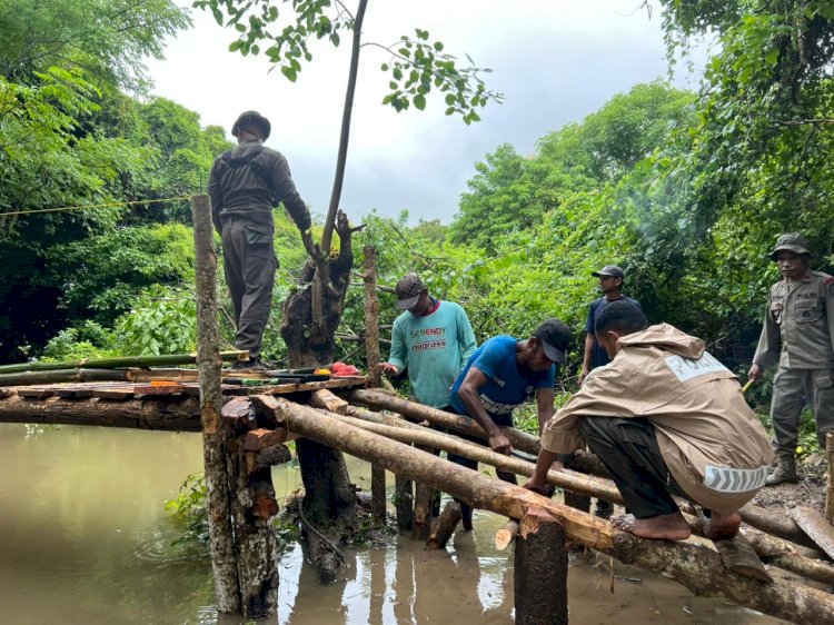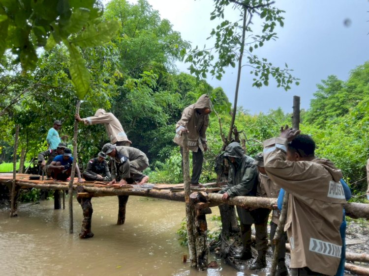 Rote, NTT - Sebanyak 28 personel Kompi 3 Batalyon A Pelopor Satuan Brimob Polda NTT melaksanakan kegiatan pembangunan jembatan sementara di Desa Temas, Kecamatan Rote Barat Laut, Kabupaten Rote Ndao, Sabtu (14/2/2026). Kegiatan ini merupakan wujud kepedulian Polri terhadap kebutuhan infrastruktur masyarakat di wilayah terpencil.