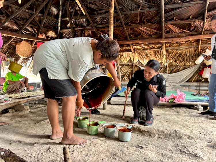Takari, 10 November 2025 — Di sebuah pondok sederhana di Dusun 3, Desa Benu, Kecamatan Takari, aroma manis gula lempeng tercium semerbak. Di sana, Mama Maria Aoetpah, warga binaan Bhabinkamtibmas Desa Benu, tampak sibuk mengaduk cairan nira di atas tungku besar. Dengan tangan cekatan dan senyum yang ramah, ia menceritakan perubahan besar dalam hidupnya sejak beralih dari pembuat sopi menjadi pengrajin gula merah.