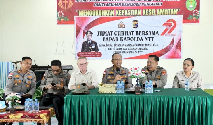 Kupang — Kepolisian Daerah Nusa Tenggara Timur (Polda NTT) kembali menggelar program Jumat Curhat sebagai wadah komunikasi langsung antara Polri dan masyarakat. Kegiatan ini berlangsung pada Jumat (30/1/2026) mulai pukul 09.00 Wita, bertempat di Panti Asuhan Generasi Pengubah, RT 20 RW 01, Kelurahan Belo, Kecamatan Maulafa, Kota Kupang.