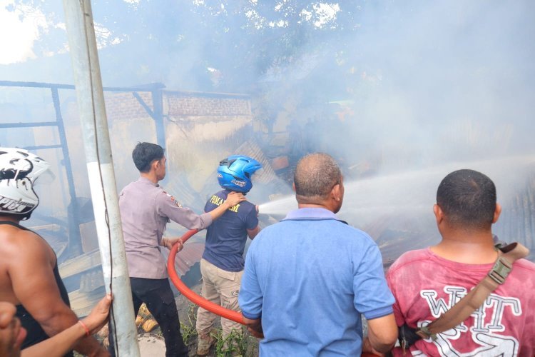 Respons Cepat Polres Alor Bantu Padamkan Kebakaran Rumah Warga di Kalabahi Kota